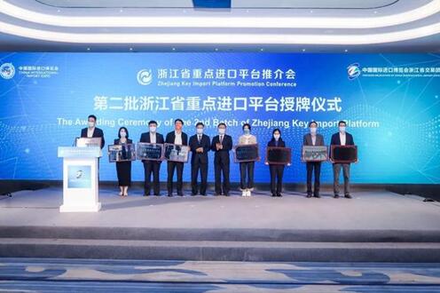 | 11月7日,中國(guó)第四屆進(jìn)口博覽會(huì)暨浙江省重點(diǎn)進(jìn)口平臺(tái)推介會(huì)在上海舉辦。會(huì)議發(fā)布新一批浙江省進(jìn)口貿(mào)易促進(jìn)創(chuàng)新示范區(qū)和26個(gè)浙江省重點(diǎn)進(jìn)口平臺(tái),寧波聯(lián)合集團(tuán)進(jìn)出口股份有限公司被評(píng)為浙江省重點(diǎn)進(jìn)口平臺(tái)之一。
